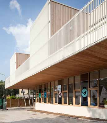 ZAmpone事务所设计了位于比利时的Pluchke日托中心。建筑特点是在覆盖木板材的中庭上方设有天窗,家具、休息区和楼梯均为满足小朋友要求而设