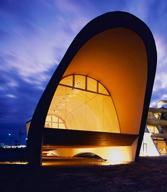 Setre Marina旅馆位于日本Shiga,由Ryuichi Ashizawa建筑事务所设计。项目如同一个巨大的风琴,在风的浮拂动下发出声响
