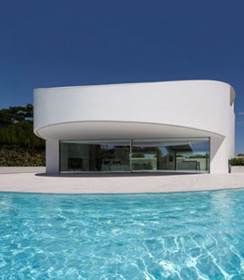 Fran Silvestre建筑事务所设计了位于巴伦西亚的一座带有泳池的住宅。建筑呈现出白色筒状形式,拥有顶层露台。Balint住宅毗邻高尔夫球