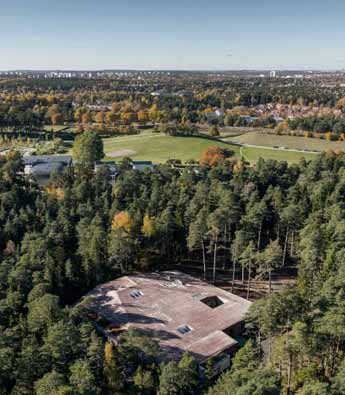 斯德哥尔摩Woodland公墓坐落于一片原始树林中的起伏场地上。建筑外围有一片广阔的百年老松。建筑距离教堂约150米,是一座紧凑的砖砌建筑。该项