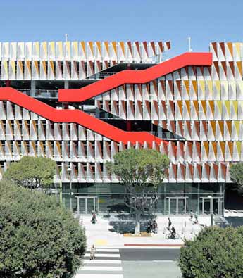 Behnisch建筑事务所同Jantzen工作室合作,共同设计了圣莫尼卡6号停车场项目,满足这一洛杉矶海岸城市市中心当地人及游客的停车需求。停车