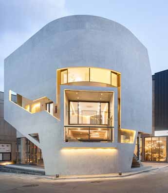 K-Pop综合商住设施符合韩国Baekhyeon-dong传统建筑构造,一至二层设有商业设施,三层以上为住宅单元。然而,首尔Moon Loon建