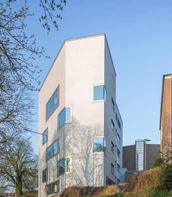 KSG建筑事务所设计了位于德国西部的亚琛工业大学化学实验楼。建筑共有六层,容纳了化学系,占据了城市中央校区的一块边角场地。建筑外立面设计思路是符