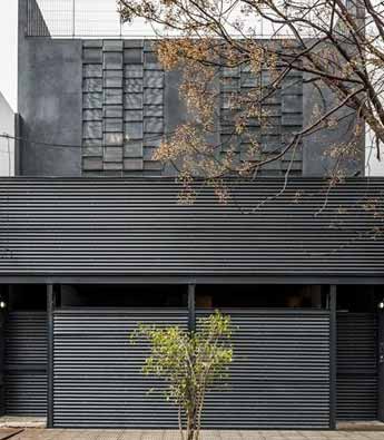 Collectief Noord建筑事务所在比利时安特卫普市中心设计了由三座住宅和一座办公室组成的混合型项目。每座住宅外观类似,略有不同。混凝土