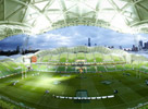 索契体育场的设计体现了2014年冬运会的美好愿景,也是索契一个永恒的传奇。体育场位于海岸边,周围群山围绕。该体育场在白天与周围的风景相应相生,晚
