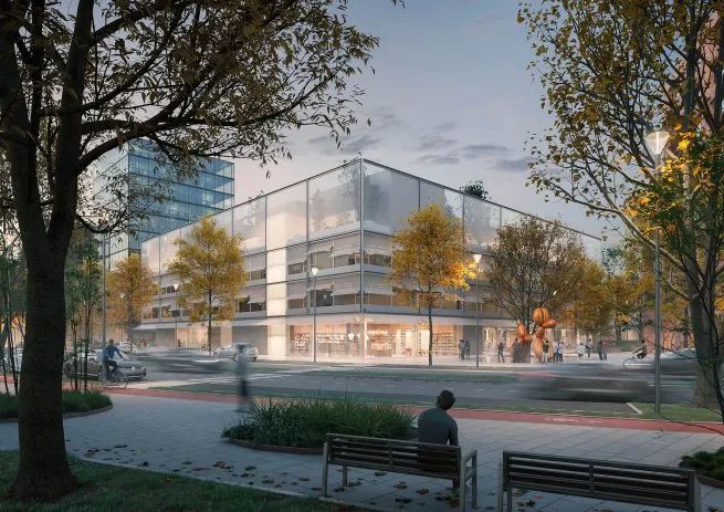 项目位于立陶宛维尔纽斯,总面积24000平方米,由两座8层和9层的低层塔楼组成,在街道上由庭院中庭和五楼的人行天桥连接。项目旨在成为该市的新聚集