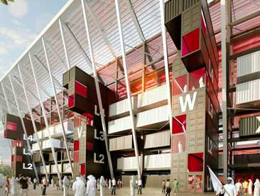 Fenwick Iribarren事务所设计的Ras Abu Aboud体育场利用了改造的集装箱原料。项目是为备受争议的2022年世界杯足球赛而