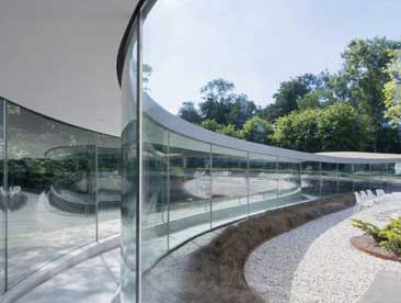 Maks and Junya Ishigami建筑事务所完成了荷兰Vijversburg公园游客中心设计。项目设有三条相互交叉的玻璃走廊,呈现出