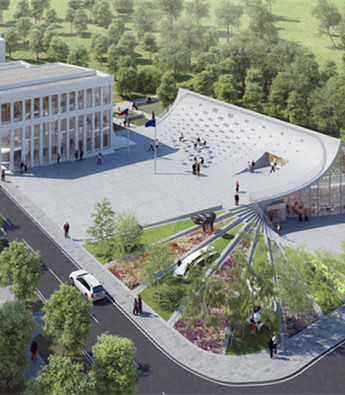 捷克当地建筑事务所PLUKK近期公布了其设计的一座市政厅与社区中心大楼。大楼建在捷克布尔诺市中心的一处斜坡地块上,由两个风格不同的楼体组成,其间
