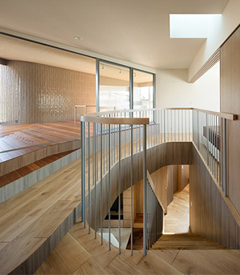 Triton住宅位于日本大坂市,旁边是一排樱花树。房子的特别之处在于它的外立面装饰,混合使用了彩色喷砂和1毫米厚度的石板,两种材料交融在一起,形