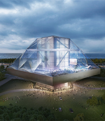 继上周卢卡斯叙事艺术博物馆宣布撤销在芝加哥的建馆计划后,OMA公布了他们为该博物馆设计的方案。这一方案曾在竞标中败给MAD设计的火山状入口的建筑