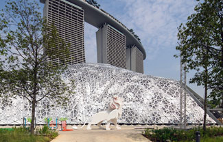 新加坡科学设计大学高级建筑实验室受托设计“我们的未来”展览建筑。建筑外部精细的金属格栅将使展览游客体验令人震撼的光影效果,如同“穿行在魔幻森林”