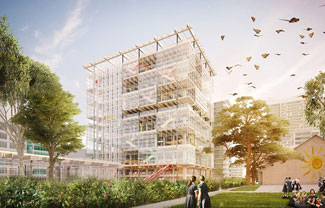 Grimshaw建筑事务所构想了位于澳洲Parramatt郊外的高层学校建筑。项目注重创造创新性学习和融合绿化环境。BVN公司同时参与了该项目,
