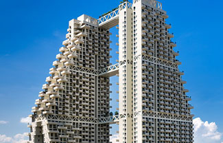 Safdie建筑事务所设计了新加坡Sky habitat住宅楼项目。项目近期于新加坡碧山完工。设计师对传统大楼进行了尺度分解,行程由三维矩阵构成
