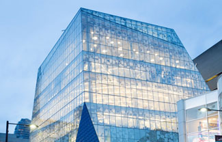 Snohetta建筑事务所为加拿大多伦多Ryerson大学设计了一个学生中心。项目特点是块面玻璃外立面上设有一个倒角。建筑面积1.4万平米,共有