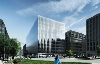 纽约REX建筑工作室公布了位于华盛顿特区的高级办公项目方案。项目坐落于城市“金三角”商务区,将容纳CBS华盛顿局和其他公司办公。周边是若干厚重的