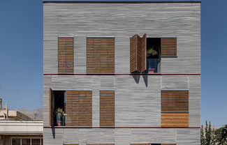 Ayeneh工作室设计了伊朗德黑兰公寓楼。该项目设有木质百叶窗,提供遮阳和保护私密性需要。建筑外立面为条纹花岗岩。Andarzgoo住宅楼位于市