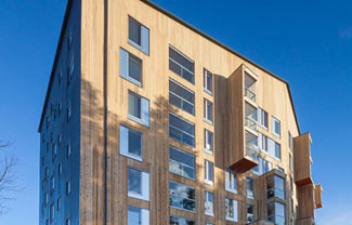 OOPEAA建筑事务所凭借Puukuokka公寓楼赢得了2015年芬兰建筑奖。该项目成为芬兰最高的木质住宅楼,也是世界上最早使用预制交错层压复合