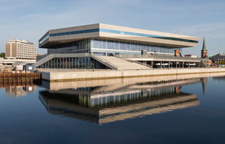 SHL建筑事务所设计了位于丹麦奥胡斯的图书馆。名为Dokk1的场馆面积达3万平米,是北欧目前最大规模的图书馆建筑。建筑设有块面金属装饰板,底层是