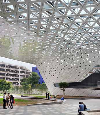 美国SOM建筑事务所设计了印度孟买新机场航站楼项目。机场混凝土室组成的顶棚参考传统露天印度建筑以及孔雀尾羽样式。航站楼占地达30公顷,位于Chh