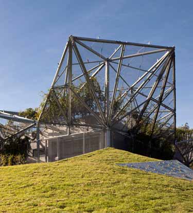 澳大利亚Collins & Turner建筑事务所设计了位于悉尼郊区Waterloo、带有植物覆层金属顶棚的青年社区中心翻新项目。项目通过设计俯