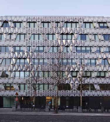 Origami折纸办公楼坐落于法国巴黎Friedland大街——与凯旋门和埃菲尔铁塔近在咫尺的一块奢华巴黎街区。项目分两步进行,沿大街的20米长