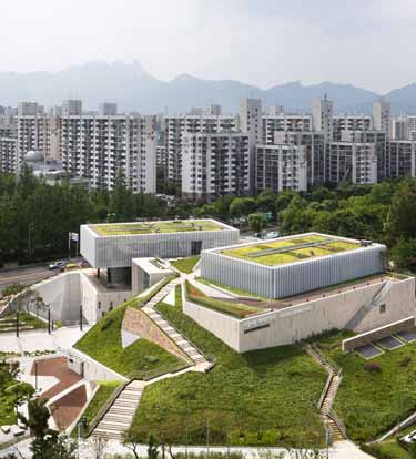 OBBA建筑事务所设计了位于韩国首尔的一座公寓楼,建筑中央开放式砖石墙壁内部具有半室外楼梯。“超越屏障”公寓楼位于首尔Naebalsan-don