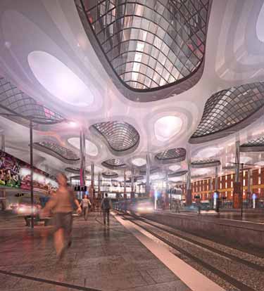 澳大利亚ARM建筑事务所为墨尔本Flinders街车站设计了具有波纹屋面的设计方案。建筑形态结构填充了河流与独特城市格局之间的区域。建筑新围护结