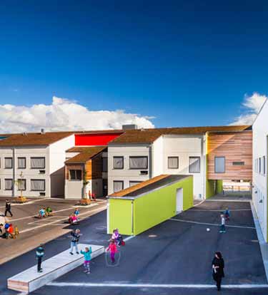 位于瑞典Lomma的Fladangskolan小学面向6-12岁儿童,学校共有12个班级,在校学生420人。L型的建筑如同从运河上岸的一条“鳄鱼