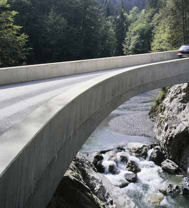 Marte.Marte设计工作室设计的一座混凝土桥梁跨越了奥地利西部一条风景如画的河流。桥梁连接的道路一段是Dornbirn市,另一端是南侧的村