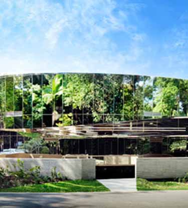 澳大利亚Charles Wright建筑事务所设计了一栋玻璃镜面覆盖的游客中心,在昆士兰Cairns植物园郁郁葱葱的环境中,建筑仿佛实现了奇异的