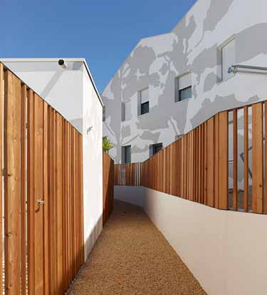 Tetrarc建筑事务所在位于法国Saint-Gilles Croix de Vie的一处社会保障性住宅项目墙面上添加了迷彩图案,设计师希望图案