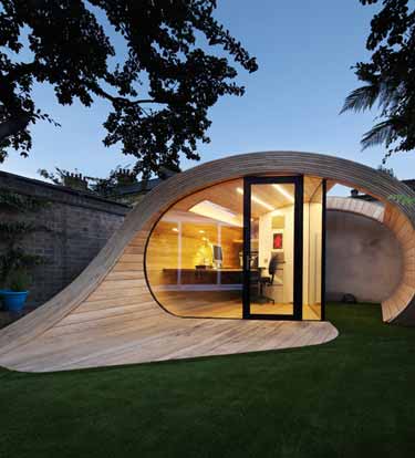 伦敦Platform 5建筑事务所设计了一处包含小办公室和储存空间的花园式场馆。项目名为“Shoffice”,雕塑性结构仿佛融入庭院,并隐藏在地