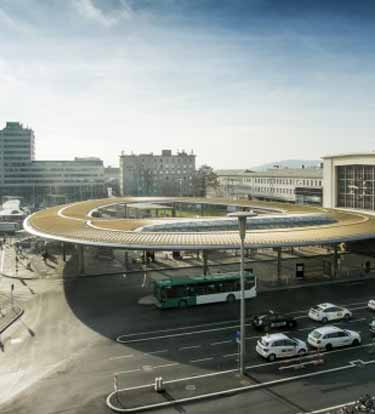 两年的施工期后,奥地利Graz火车站终于如期完工。火车站前区域设计了一个前伸屋顶,当地人称为“黄金眼”,屋顶成为了广场中心。四条地铁线路在火车站