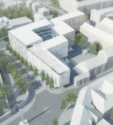 斯洛文尼亚卢布尔雅那国家图书馆设计方案由Kalamar工作室提供,设计将图书馆与广场城市表层结构完美地结合起来。设计师模拟周围环境的喧嚣活力进行