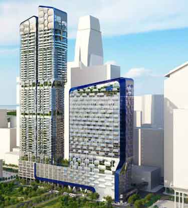 荷兰UNStudio建筑事务所最近公布了一项商住两用双子楼综合体设计方案,项目名为“V on Shenton”,将建在UIC大楼原址上。项目位于