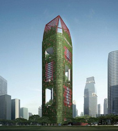 摩天大楼Oasia Downtown位于新加坡中央商务区(CBD)的核心地段,是由新加坡建筑设计公司WOHA设计的。为了增加土地利用率,设计师开