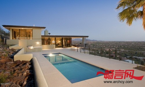 这座重新改造的住宅共有5005平方英尺(约465平方米),包含有三间卧室和三间浴室,位于亚利桑那州Carefree宏景地块(Grandview