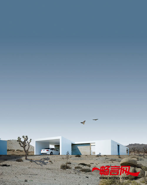 这些沙漠住宅位于位于加利福尼亚州棕榈泉市几英里以外的莫哈韦沙漠上,这个住宅项目占用了广阔的沙漠地区,但是要将对沙漠生态环境的影响降到最小化。PA