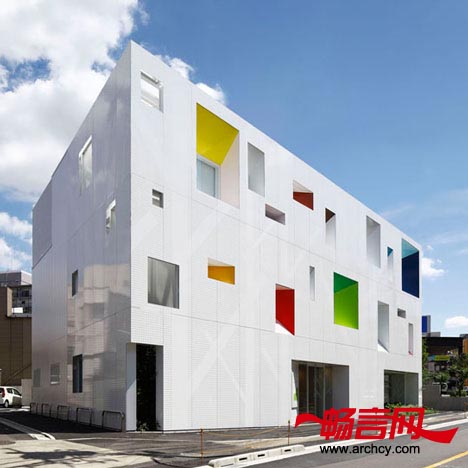 Emmanuelle Moureaux建筑设计院在建筑时嵌入了色彩明亮的玻璃,完成了东京银行Tokiwadai支行的设计。