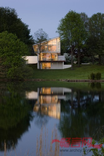 这座第二层半悬空的住宅位于德国南部城市阿默湖的Schondorf,是由Bembé Dellinger建筑工作室设计建造的。