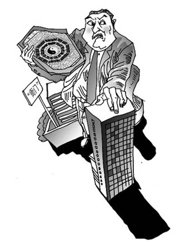 重庆江津区的一座楼盘因高度超过区委办公楼而被叫停。江津区委书记批评开发商:“你懂不懂风水?在这个地方你的建筑起来了,就挡了政府的办公楼。这里是衙