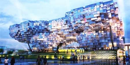 这个是令人难以置信的数字大楼,主题为:“My Dream, Our Vision”,为2010年世博会设计,该项目采用排列立方体生成一个壮观的模