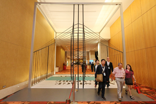 今年的艺术登陆新加坡为了给参观者一些新鲜的感觉,专门请建筑设计公司WY-TO的负责人Yann Follain先生帮忙构思博览会的入口与VIP休息