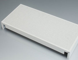 铝蜂窝穿孔吸音板由背板和冲孔面板用优质粘合剂与铝蜂窝芯能过复合设务压制形成铝蜂窝夹层结构,蜂窝芯与面板及背板间贴上一层吸音布。同时铝蜂窝芯采用六