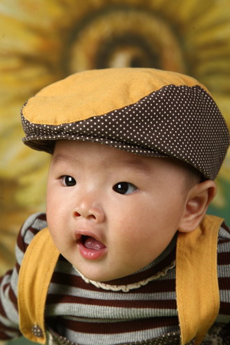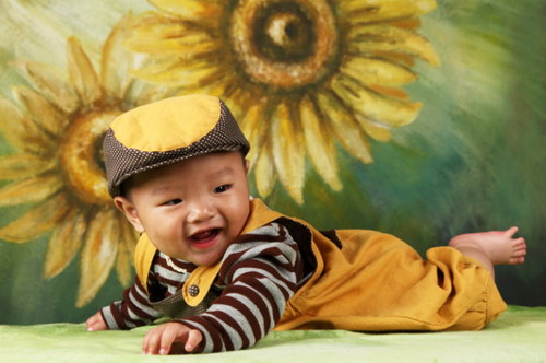 我是个爱笑的小家伙。不管见到谁都会报以可爱的笑容,笑起来咯咯有声,还有小酒窝哦。所以大人们都很喜欢我,也喜欢抱我。