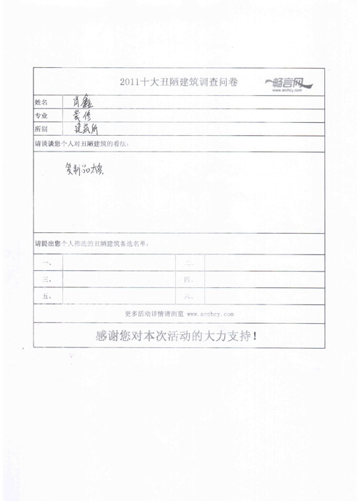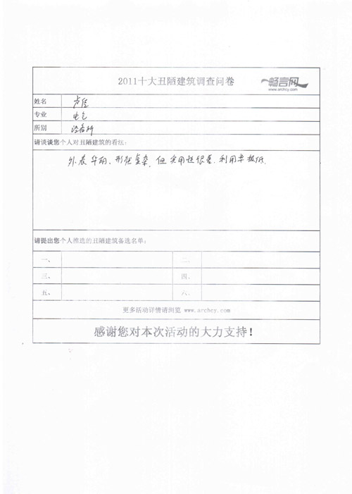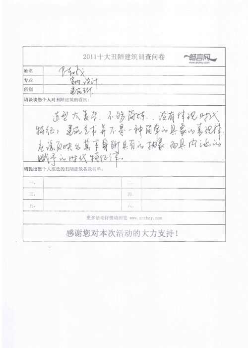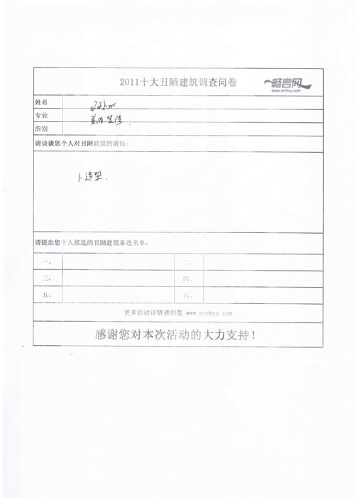 为促进建筑行业健康理性发展,畅言网在举办2010中国十大丑陋建筑评选活动后,2011中国十大丑陋建筑评选活动随即展开。为让更多建筑界人士参与到评选中来,畅言网特走进全国各大设计院,以期聆听来自一线设计师们的声音。以下是我们对浙江华信邮电设计院设计师们的采访,感谢大家的关注和支持。