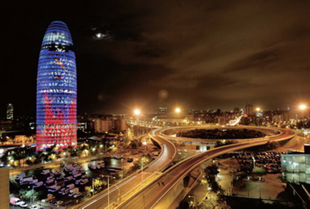 建于2005年的巴塞罗那阿格巴(Torre Agbar)大厦,已成为他的代表作之一。这是一座子弹型的大楼,墙面由25种颜色的铝格,和近6万扇彩色玻璃窗拼成,罩住了整座建筑。可以根据天气调节,增强了内部空间的光照,又能隔热保温。太阳升起落下,大厦也会呈现出五彩斑斓的颜色,远远看去仿佛大楼表面泛起了波光,又好想一股巨大的水流正冲向天际。