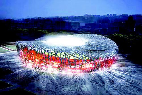 在看台设计好后,我们需要有一个外罩把它罩出来,但所需要的外罩要完全顺应看台的形式,也是东西两个方向高,所以,“鸟巢”就有了一个东西方向高,南北方向低的外罩。
