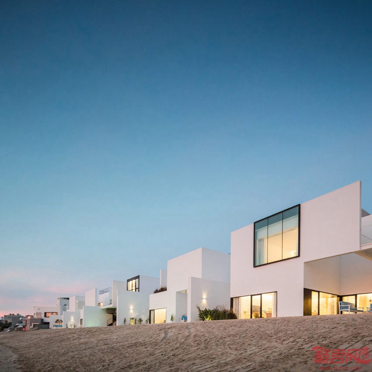 Associated Architects Partnership公司设计了南科威特Khiran度假村项目的住宅建筑。这是一组排屋,分别是五座线条简洁的白色房子,俯瞰运河。Areia住宅的几座建筑中,根据泳池和露台设置而各有不同,比邻200公里运河,该运河是为了营造度假设施而专门开挖的。